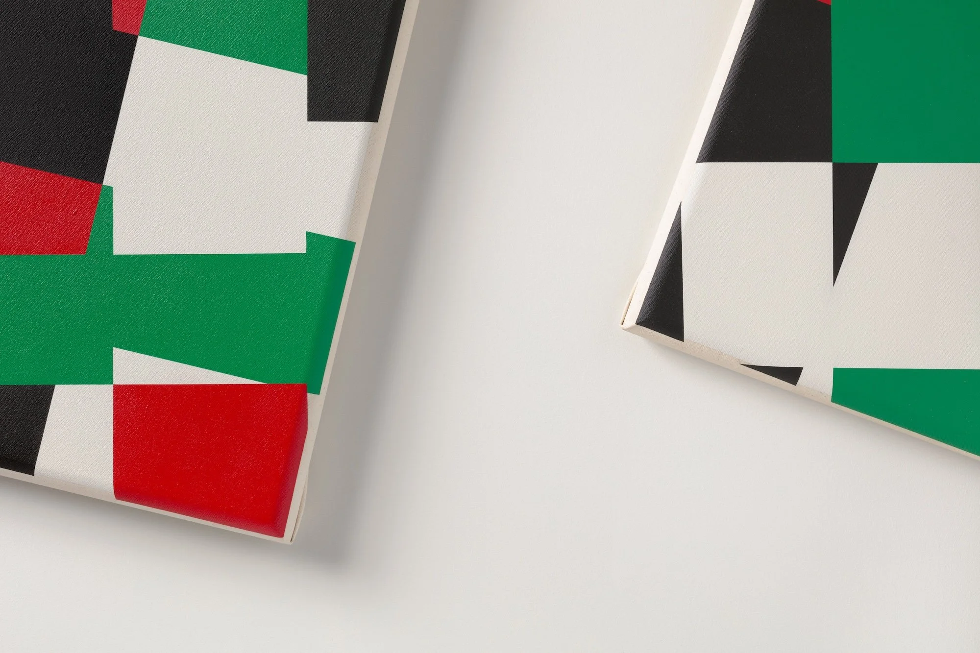 RGBW (North), 2024, oil on canvas with hand-built poplar stretcher, 66 x 56 x 1 ¾ inches View fullsize View fullsize < REDGREENBLACKWHITES